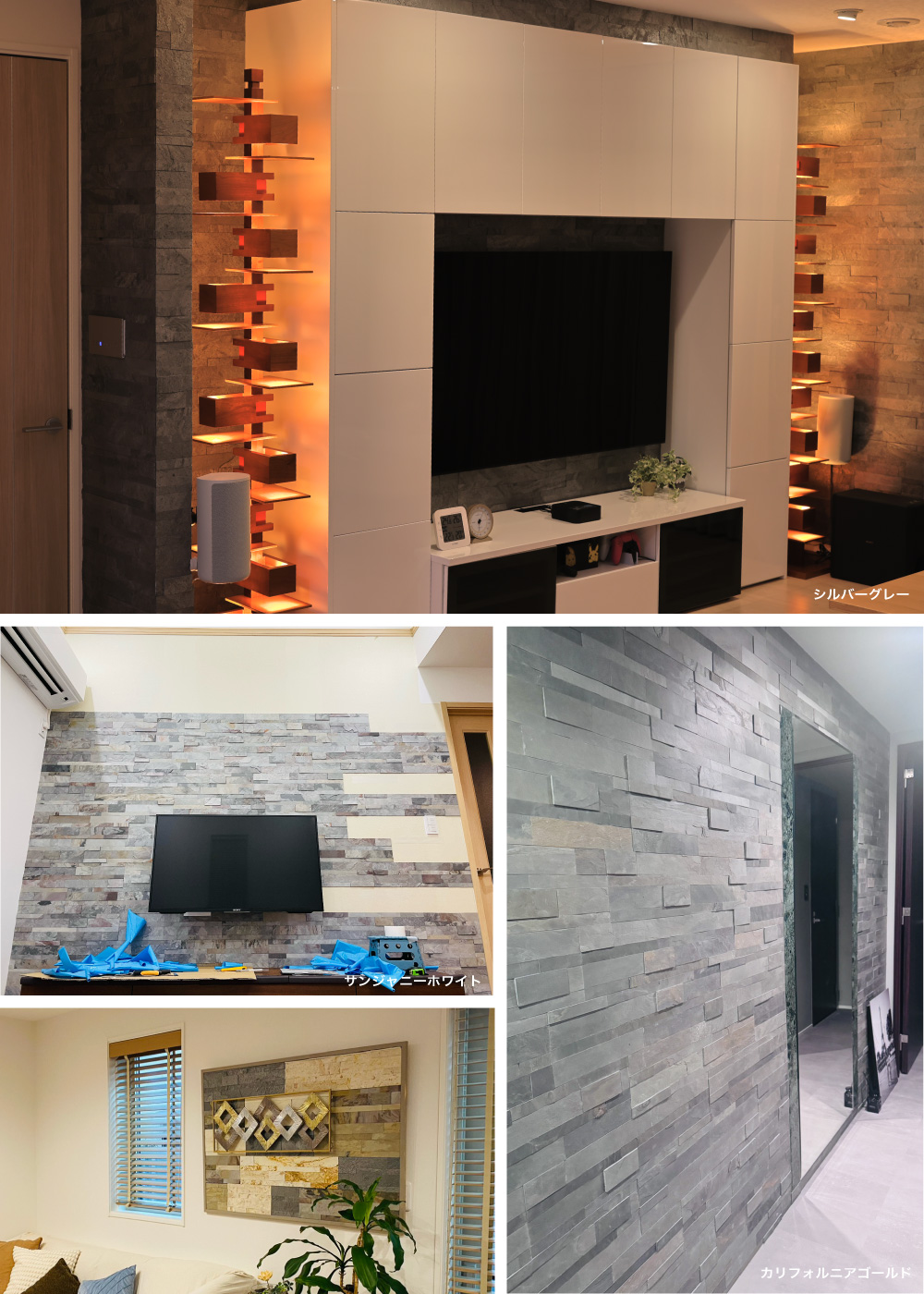 | 本物の天然石を薄くスライスして作られたストーンパネル。裏側は強力なシールなので接着剤不要で、初めての方でも簡単におしゃれな壁を作れます。石の薄い部分は万能バサミや剪定バサミでカットしてサイズ調節が可能です。壁紙では表現できないリアルな質感と立体感が特徴の壁パネルです。 |