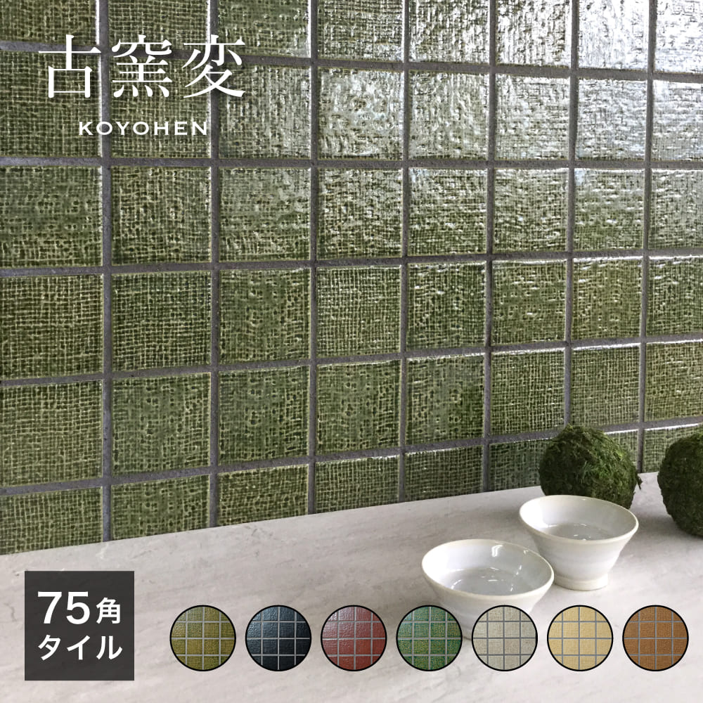 タイル タイルシート 75角 和風 和モダン 日本 桃山陶 美濃焼 織部/緑/黒/赤/茶 キッチン 洗面 浴室 DIY(古窯変(こようへん)75角 全7色 シート販売)