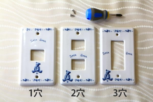 1・2穴タイプはスイッチプレートとして、3穴タイプはコンセントプレートとして大活躍!