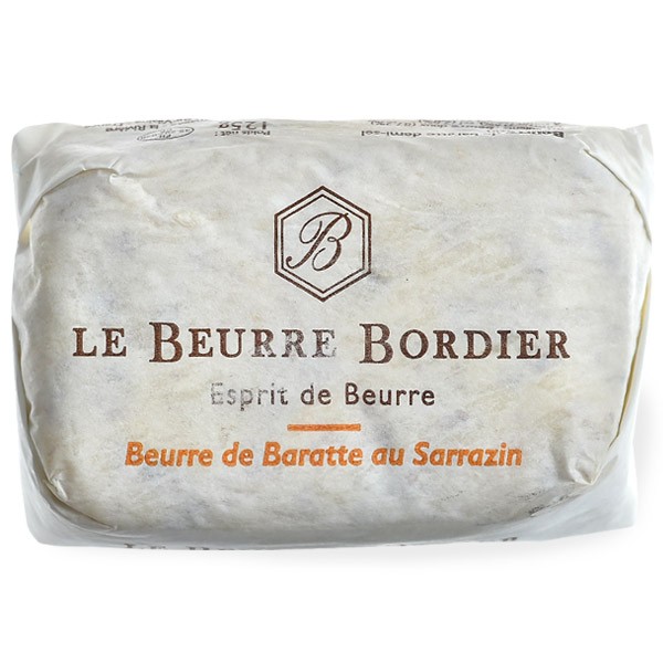 | 【商品名】 フランス産 ボルディエ[Bordier]バター そばの実入り125g 【商品紹介】 【ボルディエ 発酵バター マダガスカル産バニラ入り】フランス産の発酵バターといえばエシレかボルディエと連想するほどに今や日本でも人気の高い発酵バターです。日本の高級なフレンチなどではお目にかかる事もしばしば。ブルターニュ地方で生息している牛の乳を使用し、17世紀から続く木製撹拌槽を使った伝統製法でバターを製造しています。ごく一般的なバターを作るのに必要な時間は6時間程度ですが、ボルディエのバターは3日間をかけて丁寧に手作り製法を貫いています。よく見てみると、細かなギザギザ模様が見えます、これはツゲ材の木ベラで一つ一つ特有の形に手作業で成型しているからつく跡なのです。 【 バターの保存方法 】 バターの保存温度は5℃前後。ヨーロッパでは常温保存が一般的ですが、湿度や温度の関係で日本では、冷蔵保存をお薦めします。 バターは匂いを吸着しやすいので、冷蔵庫で保存するのも長期間は向きません。すぐに使い切れない場合は冷凍保存も可能です。しっかり密封して冷凍保存すれば風味が損なわれず美味しくお召し上がりいただけます。バターの味が製品の味を左右する、フランスの菓子・パン職人は冷凍して品質を保ったバターを使っています。お薦めの保存方法は、1週間程度で消費できる分は冷蔵庫で保存し消費して、すぐに食べきれない分は1回分(10〜20g)を小分けして、きっちりラップしてタッパーやジップ付き袋に入れて冷凍庫へ。食べる分だけ解凍して使えば2か月程度は新鮮なバターを楽しめます。 ※冷凍保存は冷蔵保存よりも長持ちしますが、家庭用の冷凍庫は開閉時に温度が変化しやすいので、長期にわたる保存はお薦めしません。 【原材料】 生乳、そば、食塩 【賞味期限】 日本到着後約2週間(冷蔵) 【保存方法】 冷蔵保存※冷凍保存も可能です。上記保存方法を参照ください。 【輸入者】 フレンチF&Bジャパン株式会社 東京都品川区荏原1-19-17 |
