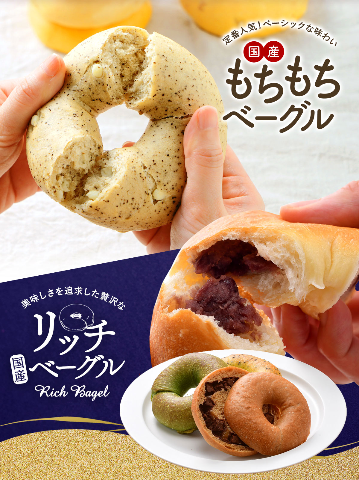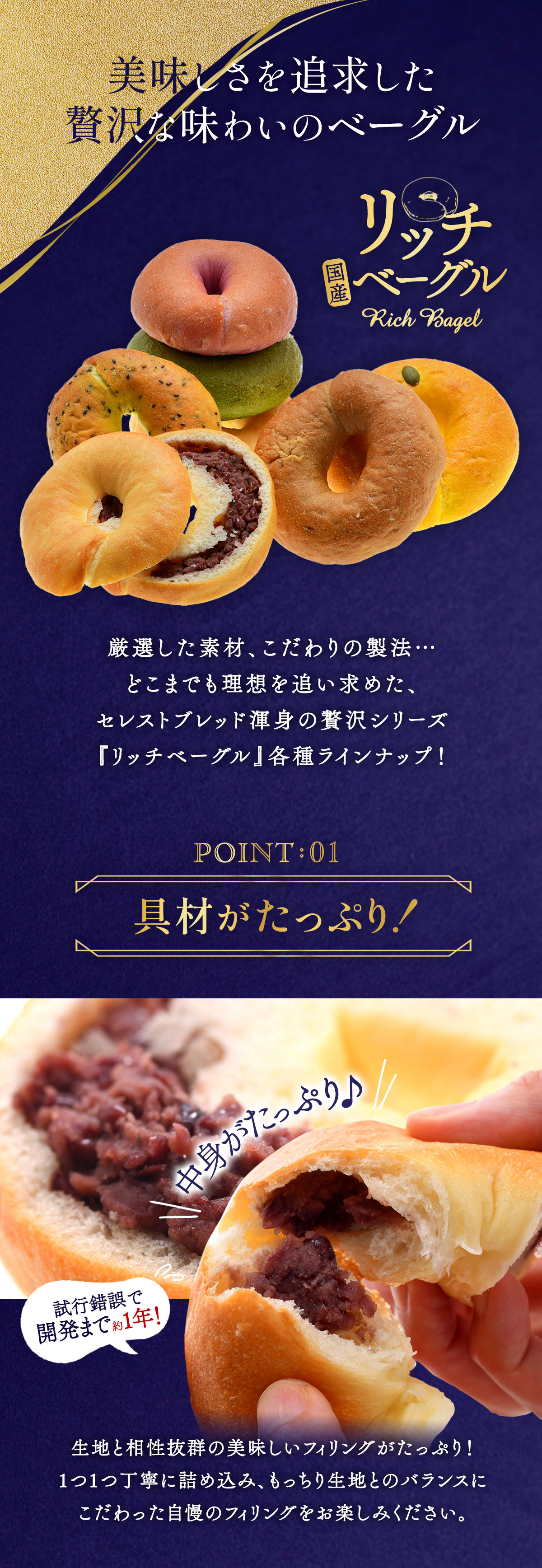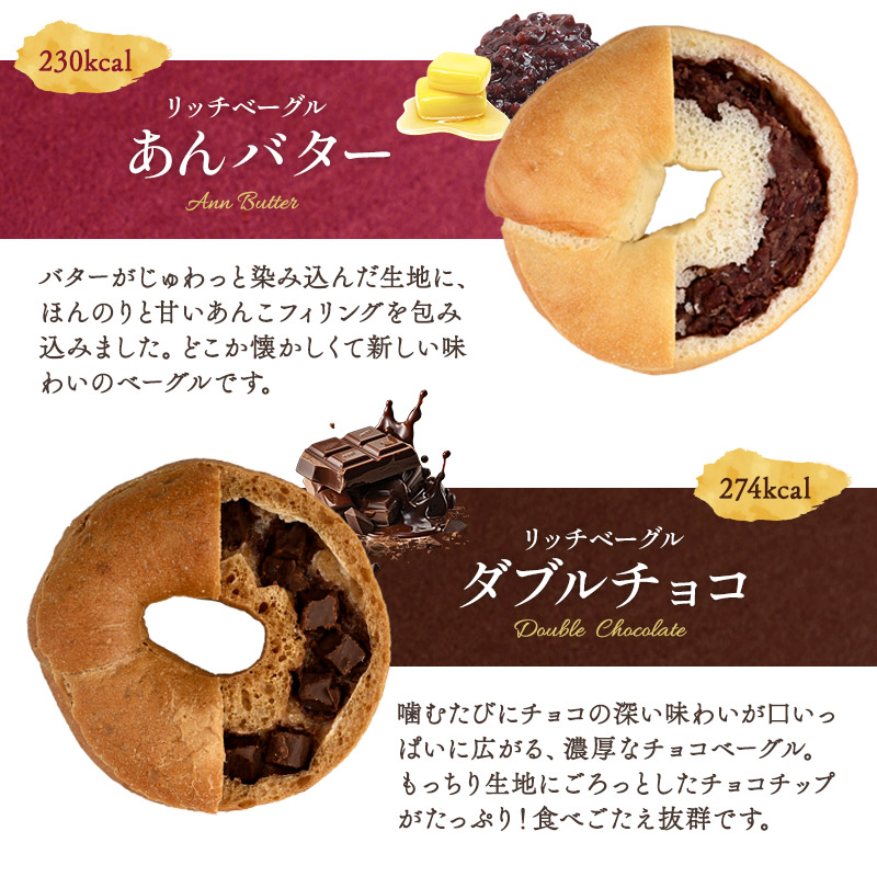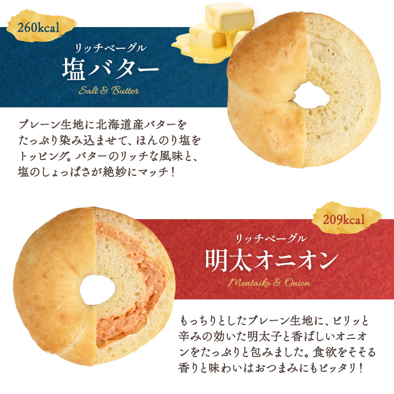 | 名称 もちもちベーグル&リッチベーグル両方選べる! リッチにもちもちベーグル 選べる12個セット(もちもちベーグル3種+リッチベーグル1種) 商品詳細 セレストブレッドオリジナル!様々な味わいが楽しめる「もちもちベーグル」と、美味しさをさらに追求した「リッチベーグル」からお選びいただけるベーグルセット。こちらはリッチベーグルが多めに選べるたっぷりリッチ&もちもちベーグルセットです! もちもちベーグルは低脂質なため、健康志向の方にも大人気なベーグル!ベーグルの材料のほとんどは小麦と水で、卵や牛乳などの脂肪分やコレステロールがとっても少ない、ローファットな食べ物。健康を意識している方やダイエット中の方におすすめのパンがベーグルなのです♪ そしてリッチベーグルは具材たっぷりなのが嬉しいポイント!厳選した素材やこだわりの製法、理想をとことん追い求めた、究極の贅沢シリーズです。もちもちベーグル、リッチベーグルのどちらも室温で自然解凍後、トースターで焼くとパリパリもっちり食感に! ※「さつまいも」と「かぼちゃキャラメル」は欠品中です。 原材料名 こちらからご確認ください 栄養成分表示(1個当たり) こちらからご確認ください 内容量 12個 ※4種(もちもちベーグル3種+リッチベーグル1種)×3個 賞味期限 お届け後30日以上 解凍後はお早めにお召し上がり下さい。 保存方法 -18℃以下(冷凍庫)で保存してください。 解凍方法(お召し上がり方) 室温に出し、しっかり自然解凍してお召し上がりください。 解凍後、横にスライスしてトースターでカリっとするまで焼いていただくと、より一層美味しくお召し上がりになれます。 【お急ぎの方】 凍ったままのベーグルをさっと水にくぐらせ、電子レンジで約30〜60秒*ほど加熱してからお召し上がり下さい。※電子レンジによりワット数が異なるので調節して下さい。 原産国名 日本 販売者 阪神酒販株式会社 兵庫県神戸市兵庫区吉田町2-13-6 |