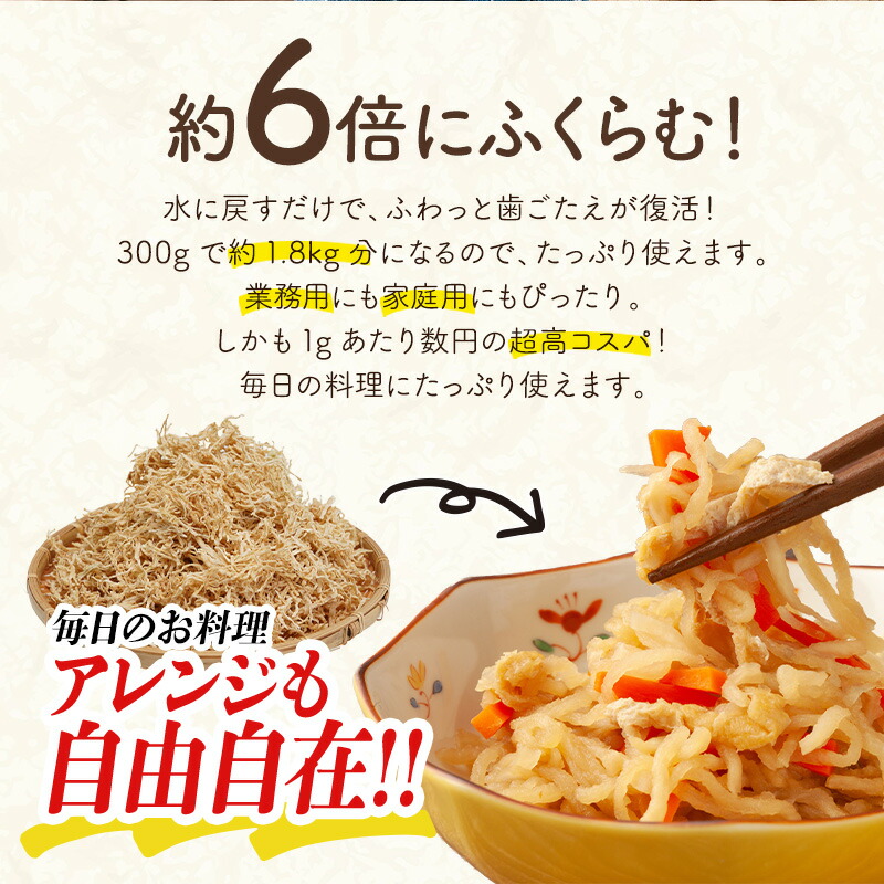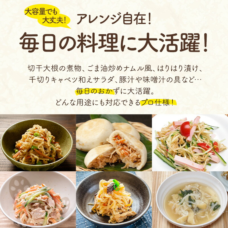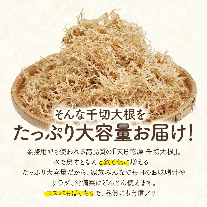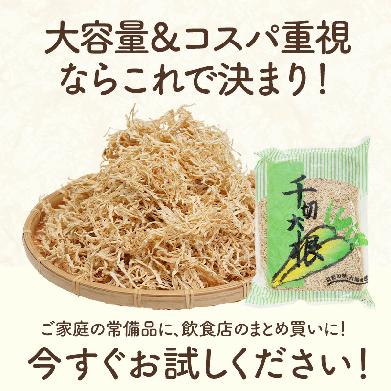 | 【商品名】 千切大根 天日乾燥 1kg 【商品紹介】 圧倒的コスパ&使いやすさ! 水で戻すだけですぐに使える!!コスパ抜群の万能野菜!!大容量!千切大根 天日乾燥 ■日本の食卓に欠かせない万能食材『千切大根』 千切大根は食物繊維、カルシウムなどを多く含み、日本では昔から親しまれてきた乾物です。他にも鉄分やカリウム、マグネシウムなども含まれ、さらに話題の低GI食品としても知られています。体に優しい健康的な食材の『千切大根』は低脂質・低カロリー(約270kcal/100g・乾)で、美容や健康におすすめされています! ■乾物になるだけで栄養価がアップ! 生の大根に比べて栄養価が約10倍前後に増加!!また、戻し汁にもビタミンやカリウムなどが含まれているため、戻し汁も活用ください! ■水で戻すだけ!簡単・時短・手間なし 本商品は業務用にも使われる高品質千切大根!水戻しで約6倍に!毎日の常備菜に◎使いたい時にすぐ使えてカットも不要!常温保管で冷蔵庫の場所もとらず、長期間保存可能だから買い置き・非常食にも最適! ■約6倍にふくらむ! 水に戻すだけで、ふわっと歯ごたえが復活!大容量1kgで約6kg分になるので、たっぷり使えます。業務用にも家庭用にもぴったり。しかも1gあたり数円の超高コスパ!毎日の料理にたっぷり使えます。 ■たっぷり大容量でお届け! 切干大根の煮物、ごま油炒めナムル風、はりはり漬け、千切りキャベツ和えサラダ、豚汁や味噌汁の具など…毎日のおかずに大活躍。どんな用途にも対応できるプロ仕様! 業務用にも、日々の食卓にも!大容量&コスパ重視ならこれで決まり! ご家庭の常備品に、飲食店のまとめ買いに!たっぷり大容量でこの価格!今すぐお試しください! [お召し上がり方] 煮物や炒め物だけでなく、サラダや味噌汁にも活躍。和風・洋風アレンジも簡単! 【原材料】 青首大根 【内容量】 1kg 【原産国】 中国 【保存方法】 直射日光、高温多湿を避けて保存してください。 【販売者】 阪神酒販株式会社 兵庫県神戸市兵庫区吉田町2-13-6 |