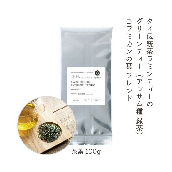 ラミン緑茶カフィアライムリーフ(コブミカンの葉)ブレンド 100g タイ原産 グリーンティー