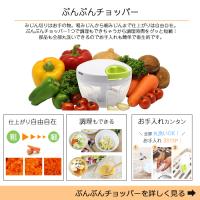 | [ ぶんぶんチョッパー ] 本体/PS樹脂 ふた/ポリプロピレン 取っ手/ABS樹脂 刃/ステンレス刃物鋼 [ ぶんぶんスピナー ] 外蓋・内蓋・ボウル/ポリスチレン(耐熱温度80℃) バスケット/ポリプロピレン(耐熱温度110℃) |