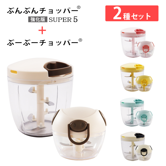 | サイズ | ぶんぶんチョッパースーパー5:約12.5×12.5×14cm ぶーぶーチョッパー:約10.5×9.5×8.3cm |