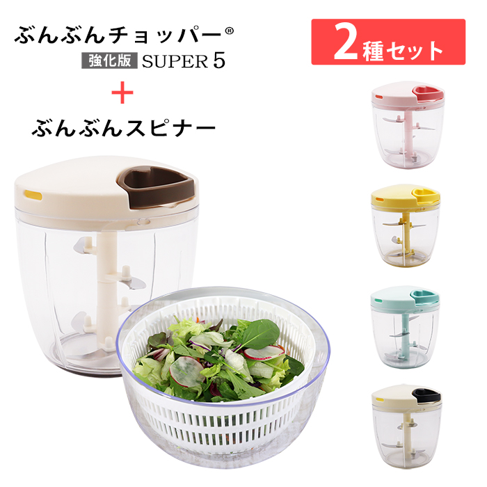 | セット内容 | [2種セット] ・ぶんぶんチョッパースーパー5(強化版):900ml ・ぶんぶんスピナー(駆動蓋なし) |