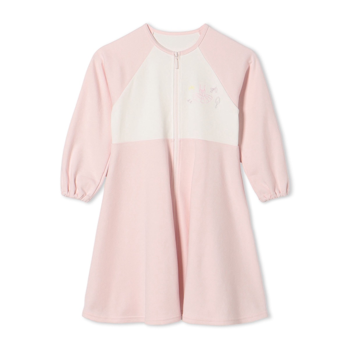 胸元にチュチュやティアラなどキュートな刺しゅう入りのジップアップワンピース