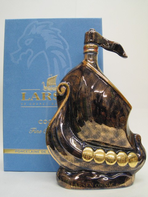 ラーセン社のシンボル・マークの帆船は、オランダ出身の創業者“イェンス・レインダール・ラーセン”がボルドーの港に入港したときの船。その帆船を模ったボトル“シップ・デカンタ”の中身はグラン・シャンパーニュ中心のナポレオン級コニャック。