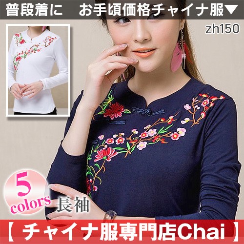 長袖 チャイナ服 トップス ロンT チャイナドレス 民族衣装 zh150 【chaiはポイント最大3倍】