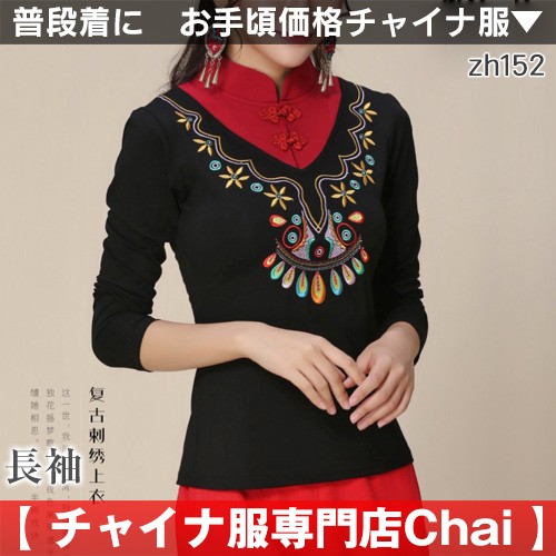 長袖 チャイナ服 トップス ロンT チャイナドレス 民族衣装 zh152 【chaiはポイント最大3倍】