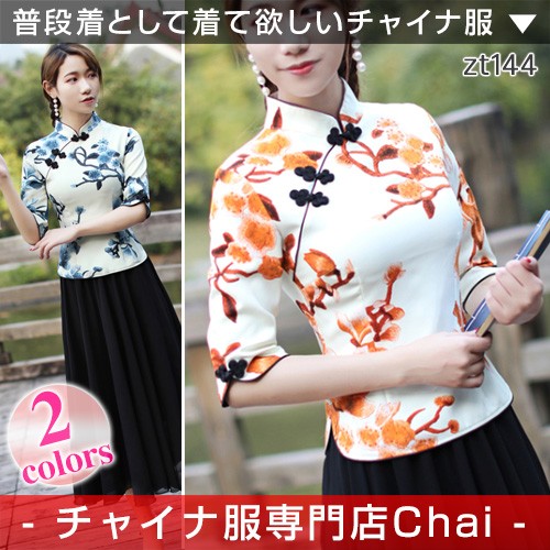 チャイナ服 七分袖 花柄 トップス アジアンテイスト 衣装 上品 本格 普段着 舞台 中国風 zt144 【chaiはポイント最大3倍】