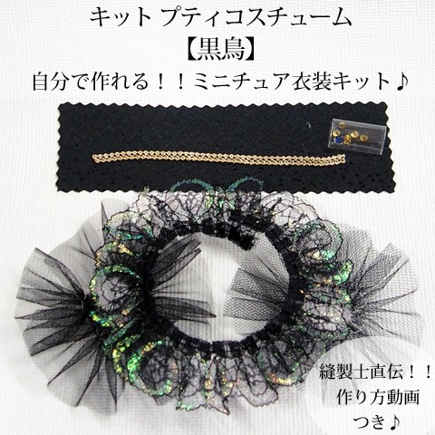Trousse プティコスチューム -黒鳥- お人形に着せれるミニチュア衣装を動画を見ながら手作り! ミニチュア衣装の為の裁縫セットも購入可能!