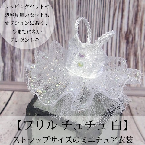 Pret プティチュチュ -フリル チュチュ 白パール- バレエハンカチ付楽屋見舞いセットもオプションにあり! ストラップサイズのミニチュアバレエ衣装