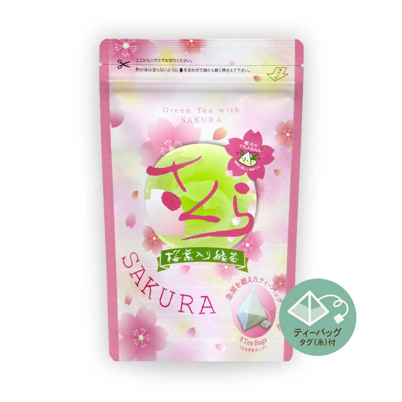 1年間じっくりと砂糖漬けした桜の葉を香り付けに少量ブレンドした緑茶のティーバッグです。煎茶に混ざった白折の爽やかな香りと桜葉の春らしい優しい香りが調和したハーブティーです。優しい甘みと苦みも春らしさを演出しています。春期限定販売品です。お湯を注ぐと春爛漫。ふくよかなサクラの香りと緑茶のハーモニー。満開のサクラ・・・サク・・・。3g×10袋。