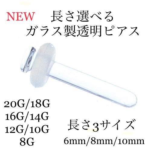長さ、6mm/8mm/10mm3サイズから部位に合わせて長さも選べるガラス製透明ピアスです。