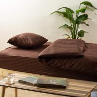 EiYU 布団カバー シングル 3点セット(掛け布団カバー ボックスシーツ 枕カバー) ブラウン サテン調ストライプ