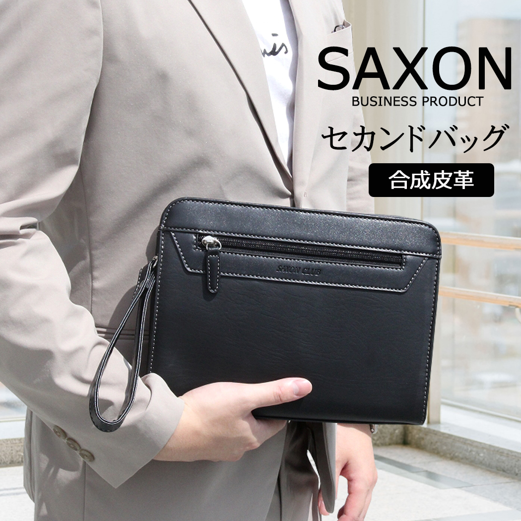 セカンドバッグ クラッチバッグ SAXON 角型 軽量 ポーチ 合皮 メンズ ストラップ ブラック ビジネス カジュアル フォーマル 冠婚葬祭 父の日 ギフト
