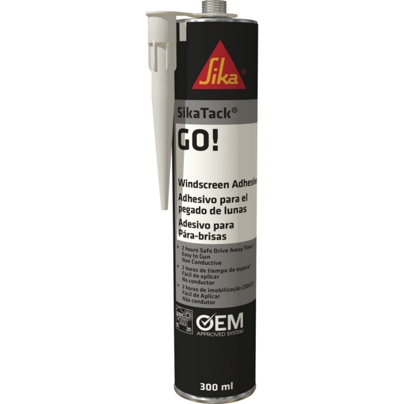 SikaTack〓 Go!は、常温での施工後短時間(安全走行可能時間は2時間)で安全に走行できる自動車ガラス補修用の接着剤です。施工が簡単で、ブラックプライマーレス施工やアンテナが取付けられたガラスに適し、優れた特性を示します。非導電性で、安全な取付けをご提供いたします。