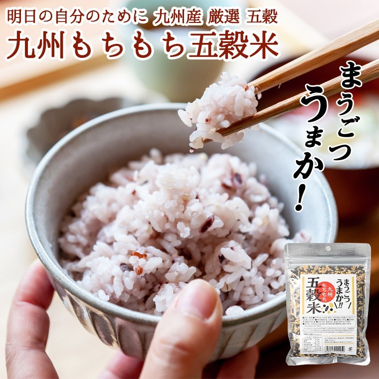 原材料名:もちきび(長崎)、もちあわ(長崎)、もち麦(鹿児島)、大豆(佐賀)、黒米(熊本・福岡)
