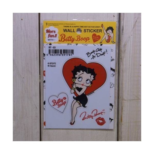 永遠のセクシーキャラクター大人気のベティーちゃん、キュートでセクシーポーズのステッカーです。お気に入りの場所に張ってモヤモヤして下さい。台紙サイズ:H9 W7cm 素材:ビニール