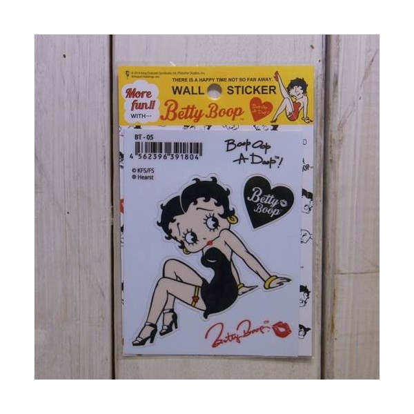 永遠のセクシーキャラクター大人気のベティーちゃん、キュートでセクシーポーズのステッカーです。お気に入りの場所に張ってモヤモヤして下さい。台紙サイズ:H9 W7cm 素材:ビニール