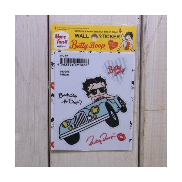 永遠のセクシーキャラクター大人気のベティーちゃん、キュートでセクシーポーズのステッカーです。お気に入りの場所に張ってモヤモヤして下さい。台紙サイズ:H9 W7cm 素材:ビニール