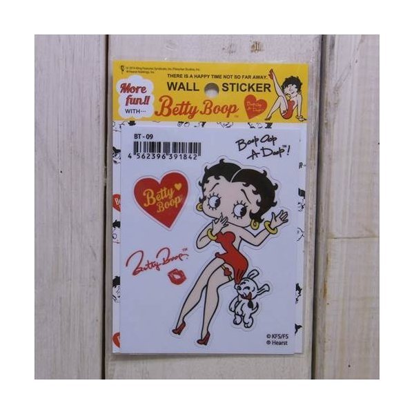 永遠のセクシーキャラクター大人気のベティーちゃん、キュートでセクシーポーズのステッカーです。お気に入りの場所に張ってモヤモヤして下さい。台紙サイズ:H9 W7cm 素材:ビニール