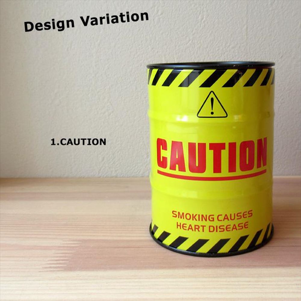 CAUTION 灰皿 蓋付き 缶 卓上 スチール