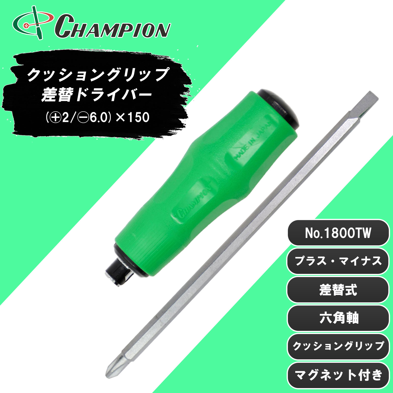 差替ドライバー (+2/-6.0)×150 プラス・マイナス兼用 差替式 六角軸 マグネット 6.35mm 2番 ドライバー 工具 日本製 クッショングリップドライバー No.1800T
