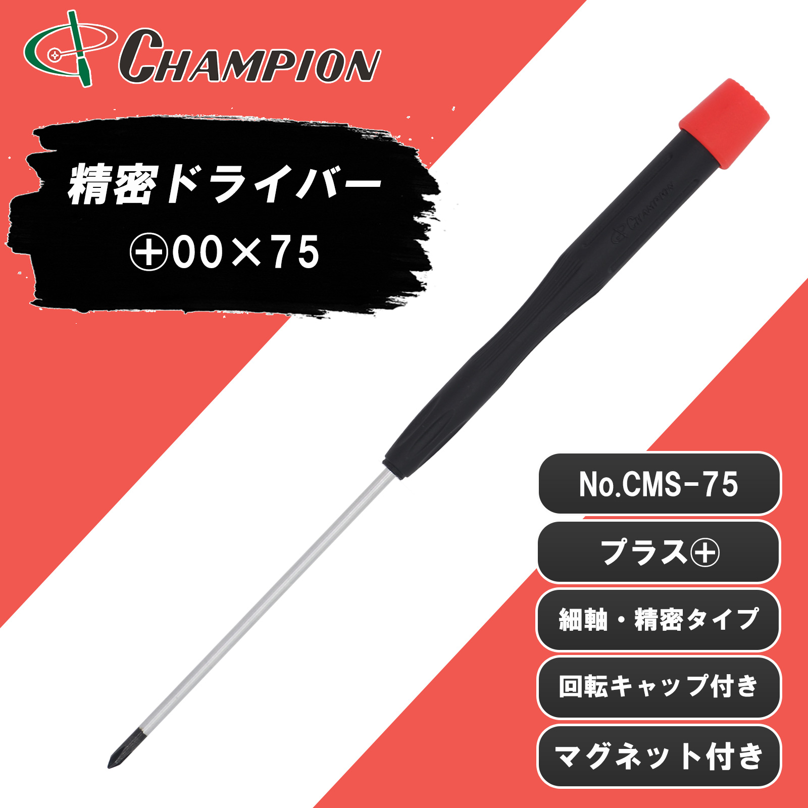 精密ドライバー +00×75 プラス マグネット付き 日本製 00番 75mm 精密 細軸 眼鏡 時計 カメラ ゲーム 樹脂 磁石 ドライバー プラスドライバー 工具 No.CMS-75
