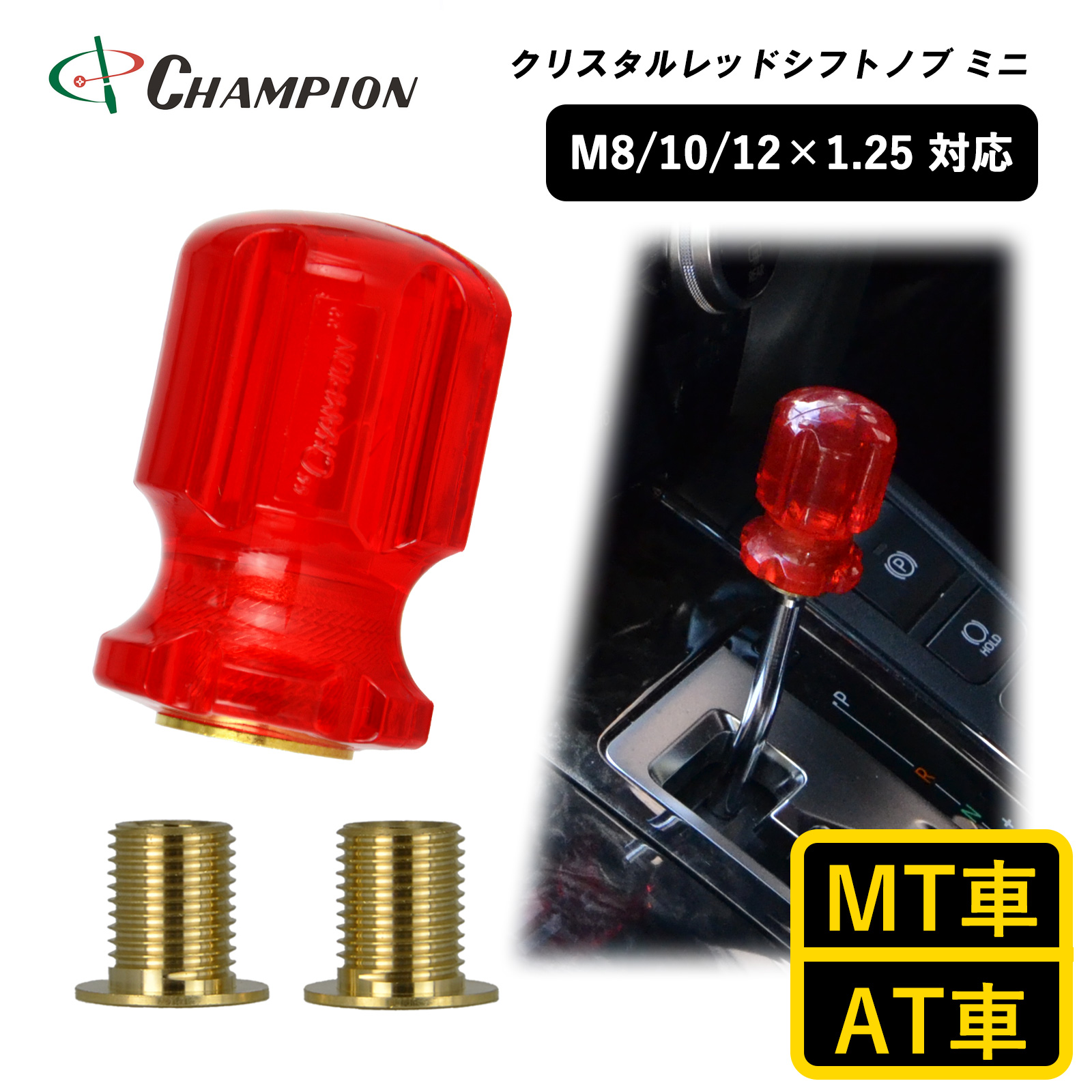 シフトノブ 汎用 M8 M10 M12 1.25mm AT車用 MT車用 47mm 8mm 10mm 12mm おしゃれ クリア 樹脂 赤 日本製 クリスタルレッドシフトノブミニ No.SK-CRSKM