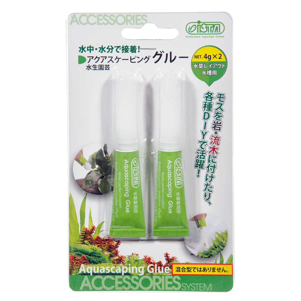 | 特長 | ●水中、水分で硬化するタイプのアクアリウム専用に改良されたグルーです。 ●水草レイアウト水槽の水草(主にモス)を流木や岩に取り付けたり、流木同士、小さい岩同士を取り付けるなどの各種DIY、様々な用途で活躍します。 ●キャップ、ノズル付の遮光性アルミチューブ入りのジェル状グルーです。使用上を考慮し、4gの2本入りで便利です。 ●水槽外はもちろん、水槽内、水中でそのまま作業することも可能です。 |