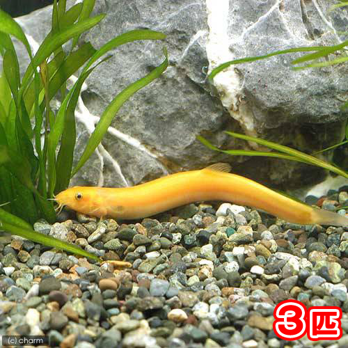 日本全国の平野部の水田や湿地などに生息するマドジョウの黄変個体です。自然界では黄変個体は非常に珍しいものの、ブリードによって作出されたことから流通量も多く、熱帯魚にも負けない派手な外見から人気の種です。鮮やかな色彩から水槽内で隠れていてもすぐに発見でき、愛嬌のある顔から観賞価値が高いです。飼育は容易でエサも雑食性で何でも食べます。驚くと水槽から飛び出すことがあるのでフタを用意するとよいでしょう。水槽内での繁殖は難しいです。