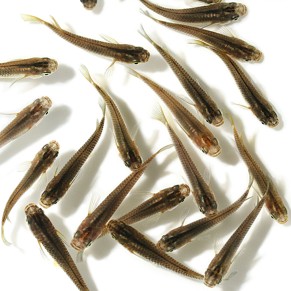 | 繁殖 | 繁殖は容易で、屋内でも屋外でも繁殖させることができます。 背ビレに切り込みがあり、尻ビレが幅広いのがオスでこれらの特徴を持たないのがメスです。 オスとメスをある程度の匹数用意することで、メスが総排泄口付近に卵をぶら下げている姿を見ることができます。 1ペアでも繁殖行動は確認でき、増やすことができます。 産卵床としてマツモなどの水草や、ホテイアオイなどの浮草を用意すると水草の茎や葉、浮草の根に卵が産み付けられます。 また、産卵床がない状態だと過抱卵になったり、卵を水槽底やシリコン部分に産み付ける可能性があります。 産卵は朝に行われることが多く、一度産卵が始まると数日間で何度も産卵が行われます。 産卵された卵はそのままでも孵化させることができますが、生まれたての稚魚が親魚に食べられてしまう場合があるため、別の水槽や隔離ネットなどに移した方がいいでしょう。 卵は水温にもよりますが、1週間〜10日間ほどで孵化します。 稚魚は親魚に与えていた人工飼料を細かくして与えるか、稚魚用の人工飼料を与えれば成長させることができます。 その他の方法として、産卵床にシュロの皮や毛糸などで作ったモップを使用したり、取れた卵をほぐしてメチレンブルー系の薬に漬けて死卵を防ぐといった方法もあります。 |
