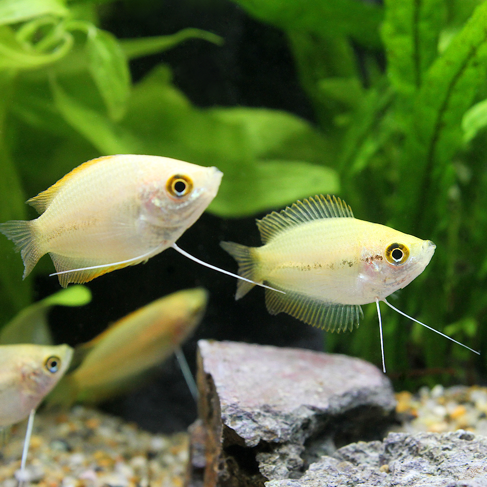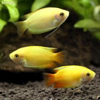 | 種類詳細 | インド原産のハニードワーフグラミーの改良品種です。通常のドワーフグラミーよりさらに小型の種で、成長しても4cm程度の体長と、混泳に適した温和な性格から人気の種です。原種は褐色のやや地味な種ですが、繁殖期のオスはオレンジの体色と黄色の背ビレが美しく、喉下が黒くなります。本タイプは全身がゴールデンの体色に改良され、赤い尾ビレとのコントラストが大変美しく、人気のタイプです。ゴールデンタイプには体色の黄色味にバリエーションが見られ、本タイプは黄色味の強いタイプです。飼育は、ゆったりとした動きなので、水槽内の水流は弱めにしてあげたほうが良いです。また、腹ビレが長いため、ヒレをつつくスマトラ等との混泳は避けた方が良いでしょう。繁殖は他のアナバンティ同様にオスが泡巣を作るタイプです。 |