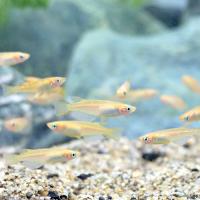 | 品種詳細 | 改良メダカの中で最も代表的な品種です。 ヒメダカは緋色をめざして改良されたことから、ヒメダカという名が付いたとされています。 メダカと言えばヒメダカを想像する方も多いほど一般的な品種で、理科の学習教材としてもおなじみです。 黄色みを帯びた優しげな体色は、水槽やビオトープで泳ぐ姿は大変可愛らしいです。 |