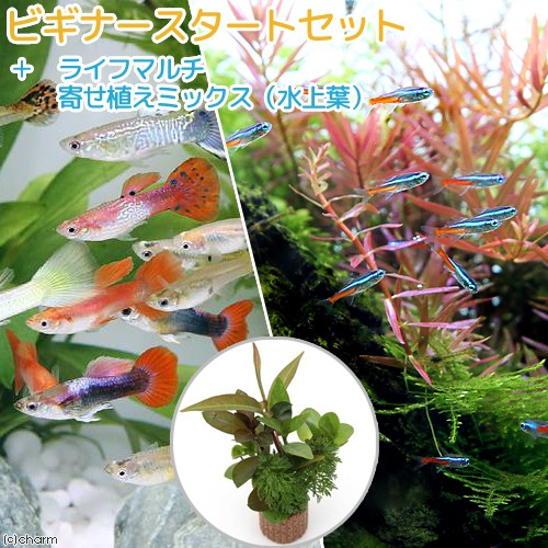 | セット内容 | ●ネオンテトラ(10匹) ●外国産ミックスグッピー(3ペア) ●ライフマルチ 寄せ植えミックス(水上葉)(1個) |