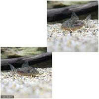 | 繁殖 | 十分に成熟したメスはふっくらとした体型を持ち、腹ビレがメスのほうが丸くなる点で判別可能です。 ブリード個体では1年程度で性成熟しますがワイルド個体では5年程度要する場合もあります。 繁殖を狙う場合はオス2匹メス3匹程度で飼育し、生餌を主体に十分な給餌を行います。 十分に成熟するとオスがメスをしきりに追うようになり、pHの変動や水温などの変化をきっかけに産卵行動に至ります。 卵は非常に粘着性が高く、水槽面やパイプ、流木などに数個ずつまとめて産卵します。 この産卵時にはTポジションと呼ばれるユニークな行動が見られます。 産卵直後の卵は簡単にはがせるので、別容器に移し十分にエアーレーションします。 孵化後の稚魚はヨークサックが吸収された後、ブラインを与えます。 コリドラスの繁殖は難種も多く、ロングノーズ種では稚魚の育成が難しい種も多いです。 |