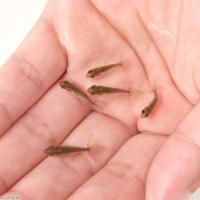 | 繁殖 | 金魚は1歳で繁殖可能になりますが、親魚に適するのは2歳以上から5歳くらいです。 春先に繁殖期を向かえ、オスは発情すると口やエラに追い星と呼ばれる白い突起が出現します。 産卵が行われるのは朝方が多く、オスが激しくメスを追いかけ、水草などの産卵床に卵を産み付けます。 一度の産卵で1000粒以上産むため、産卵させる場合には十分な準備が必要です。 産卵された卵は親魚に食べられてしまうので、発見次第別の水槽に移し、25°C程度の水温で十分にエアレーションを行い、1週間程度でふ化します。 ふ化した稚魚はしばらく餌は必要なく、遊泳を開始したらブラインシュリンプの幼生をふ化させて与えると良いでしょう。 金魚の稚魚は黒い体色を持ち、成長と共に黒い体色が落ち体色が判別可能となります。 産卵後の親魚は著しく体力を消耗し、調子を戻すのが非常に難しく、産卵時についた傷や鱗のはげが治らないことも多いです。安静にしてじっくり様子を見る必要があります。 |