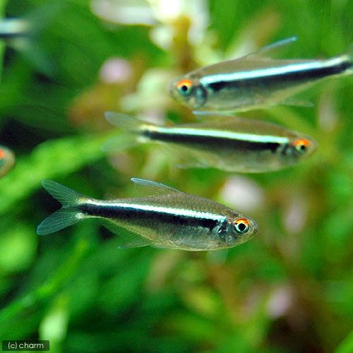 | 種類詳細 | ブラジル、パラグアイ川原産のカラシンです。 古くから東南アジアでブリードされた個体が流通し、シックな美しさと丈夫さから入門種として知られています。 その色彩はネオンテトラの赤い部分を黒くしたような色彩パターンを持ち、ブルーからゴールドのラインと体側の黒いライン、眼の上部の赤い発色が良く目立ちます。 飼い込まれた個体では各ヒレがうっすらと黄色味を帯び、入門種といえど侮れない美しさを持っています。 また、近年ではワイルド個体やプラチナ個体も流通しています。飼育は容易で、同程度のサイズなら混泳にも向いています。 ネオンテトラなどの派手な美しさを持つ魚と混泳させると、お互いの美しさが引き立ちます。 |