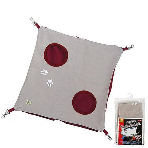 | 特長 | ●しっかりとした生地とシンプルなデザインが特徴的なフェレット用ハンモックです。 ●ふたつのトンネルが楽しい!多頭使用にぴったりのツイントンネル付きです。 ●ケージの中に設置してご使用ください。 |