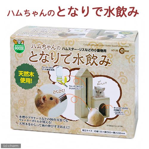 | 特長 | ●ハムスターのウォーターボトル用スタンドです。 ●本体は天然木でできていますので、ペットがかじっても安心です。 ●隠れ家としてもご使用いただけます。 ●水槽やプラケースなどの飼育容器でも「ウォーターボトル/ST-70」(別売)が使えます。 |
