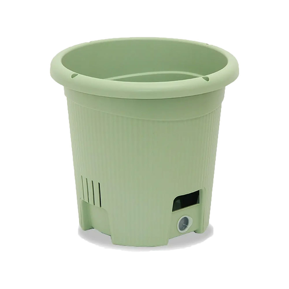 | 特長 | ●1ポット植え用の丸型タイプのプランターです。 ●底面給水構造なので水やりがとっても楽ちんです。 ●底面の貯水部よりしっかり水を補給するので、水やりの手間を軽減でき、日差しの強い夏場でも水涸れ防止に役立ちます。 ●畑と同じ環境で栽培できるので、元気に育ちます。 ●ホースやジョウロか直接水が注げる、大きな給水口付きです。 ●余分な水はオーバーフローしますので、根腐れを防ぎます。 ●半透明の止水栓なので、水位窓として貯水量を一目で確認できます。 ●側面のサイドスリットが、通気性と排水性を高めます。 ●熱の跳ね返りから根を守る底構造になっています。 ●たっぷり水を吸うナスやキュウリなどの栽培にぴったりです。 |