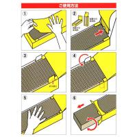 | ご使用方法 | ●パッケージ表面のミシン目に沿ってはがします。ゆっくりはがしてください。 ●ミシン目に沿って最後まではがし終わったら、パッケージ天面を二つ折りにします。 ●はがした一番上の部分をツメみがきの下に差し込み、壁や柱などに横または縦にピンで固定してご使用ください。 ●四隅にある折り部分をすべて折り曲げます。 ●四隅の折り曲げた部分をパッケージの中に折り込み、パッケージとツメみがきの間にミゾを作ります。 ●付属のまたたびの粉をネコちゃんがツメをみがく部分に微量すりこんでください。 ●ある程度キズが目立ってきましたら、パッケージからツメみがきを取り出し、裏返して裏面の新しいほうをご使用ください。 |