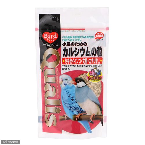 | 特長 | ●セキセイインコや文鳥、カナリヤなどの小鳥の成長と骨格の強化のサポートをするカルシウムの粒です。 ●主食に混ぜて与えることでカルシウムを補うことができます。 |