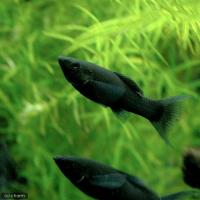 | 種類詳細 | メキシコ原産のブラックモーリーをライヤーテールにした改良品種です。 漆黒の体は存在感があり、水草にも非常に映える美しい魚です。 大食漢で草食性もあるため、糸状藻や藍藻、油膜の除去に貢献してくれますが、好んで食べるわけではないので給餌量を調整する必要があります。 飼育は容易で一度水に慣れれば強健な種ですが、細菌性の感染症に弱く導入時には注意が必要です。 他の卵胎生メダカ同様に繁殖は非常に容易で、やや大きめの稚魚を生みます。 |