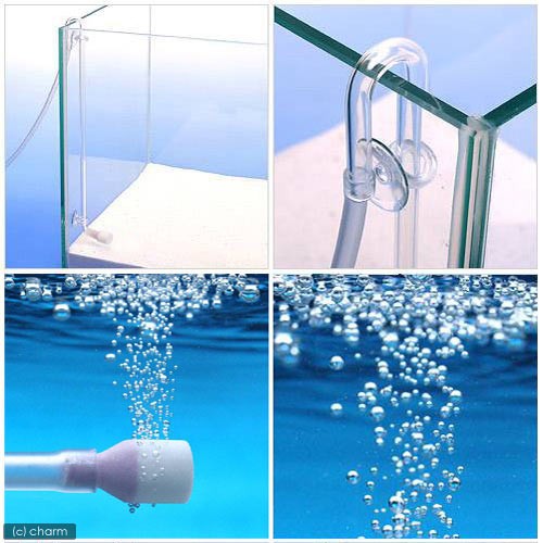 | 特長 | ●エアーストーン、配管を美しくかつすっきりとまとめるシンプルパーツセットです。 ●エアレーションの配管をこっそり目立たなくしたい。そんな方にオススメです。 |