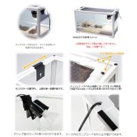 | ご注意 | ※本品は両生類、爬虫類飼育用ケージです。目的以外の用途では使用しないでください。 ※商品破損防止の為、商品を一度取り出し再梱包させて頂いております。予めご了承下さいませ。 ※構造の都合上、霧吹きでケース内を濡らしたり、湿度が必要な生き物の飼育する場合では、結露や水滴がベースのつなぎ目を伝って外ににじみ出る場合があります。ご注意の上、適宜ガード等を設置してください。 ※ハムスターやリス・デグー等のげっ歯類の生き物は、樹脂パーツやシリコンをかじる場合がありますので、使用しないでください。 ※水槽として使用することはできません。水を張る場合はボトムベースの高さの半分以下までにしてください。 ※水を張る場合は、事前に水に濡れても良い場所で水を張り、水漏れの有無を確認してから使用してください。 ※本製品はガラス製パーツを含みます。乱暴に扱ったり、物を当てたりしないで下さい。取り扱いを誤るとガラスが割れてケガをしたり水漏れを起こす場合があります。 ※飼育時における事故等に関しましては責任を負いかねますので予めご了承下さい。 |