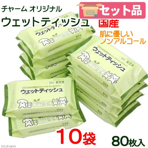 | 肌に優しいヒアルロン酸配合 ノンアルコール チャームオリジナルウェットティッシュ 80枚×10袋 | |