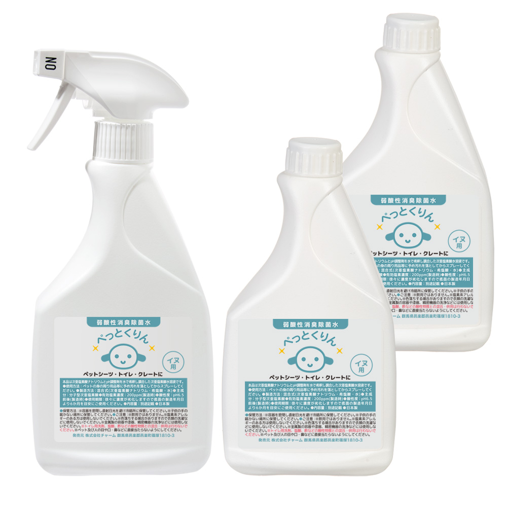 | 弱酸性消臭除菌水 ぺっとくりん 犬用 500ml + 詰め替え用 500ml×2個セット | |